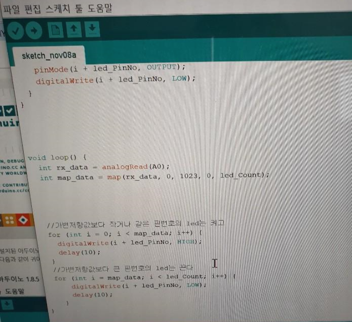 가변저항 돌릴때마다 변하는 거 간단하지만 재밌었음.