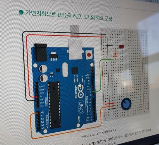 이렇게 가변저항을 돌리면 LED의 밝기가 제어되는 것을 확인해볼 수 있다!!!